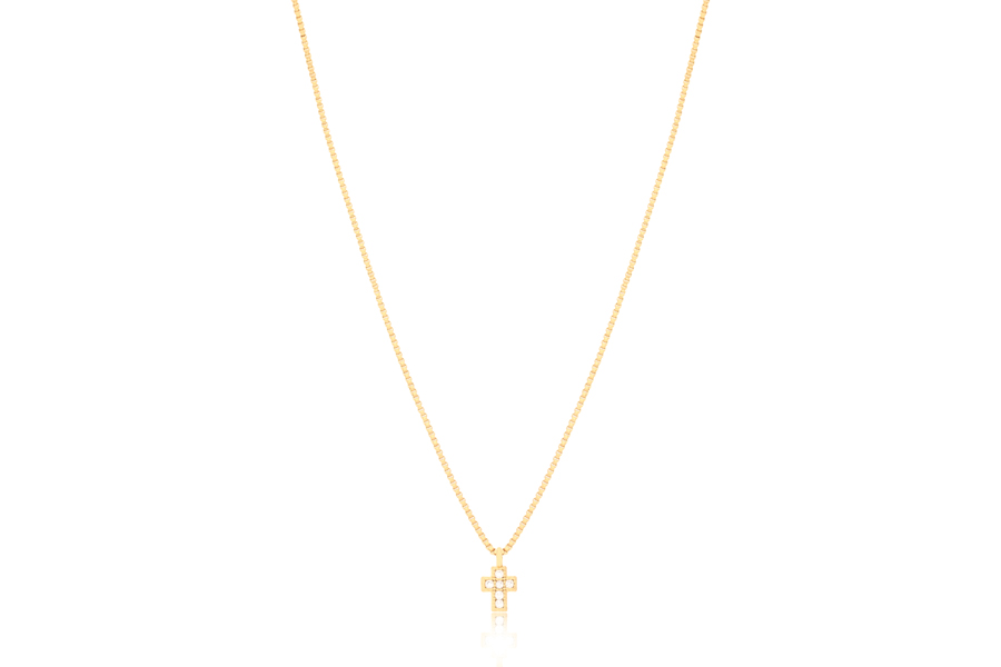 GARGANTILHA BANHADA EM OURO, VENEZIANA 0,80mm, 40cm COMPRIMENTO E ZIRCÔNIA REDONDA 3mm, PARA QUALQUER COR DE PEDRA