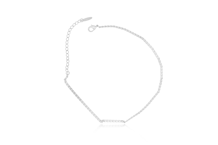 TORNOZELEIRA BANHADA EM RÓDIO BRANCO, CORRENTE ELO CORAÇÃO DUPLO 2,40mm LARGURA, 23cm COMPRIMENTO