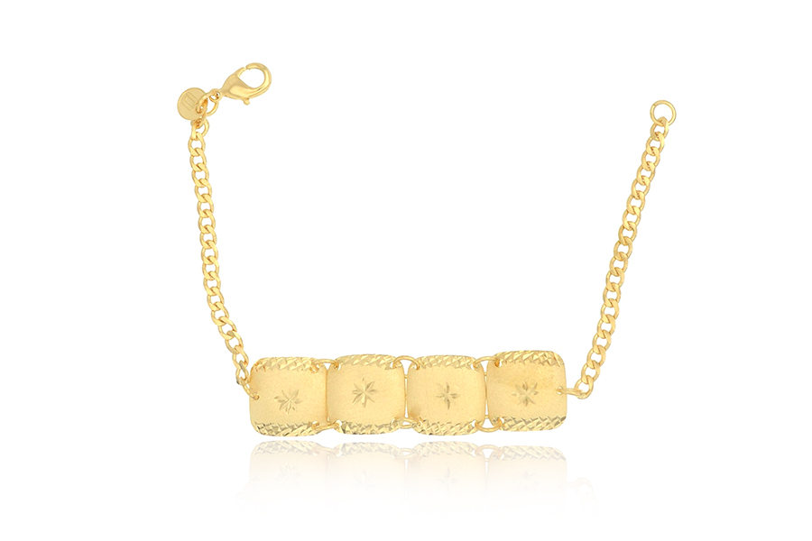 PULSEIRA INFANTIL BANHADA EM OURO, VENEZIANA LONGA 1,50mm ESPESSURA E CHAPINHA COM MENINO 24mm COMPRIMENTO