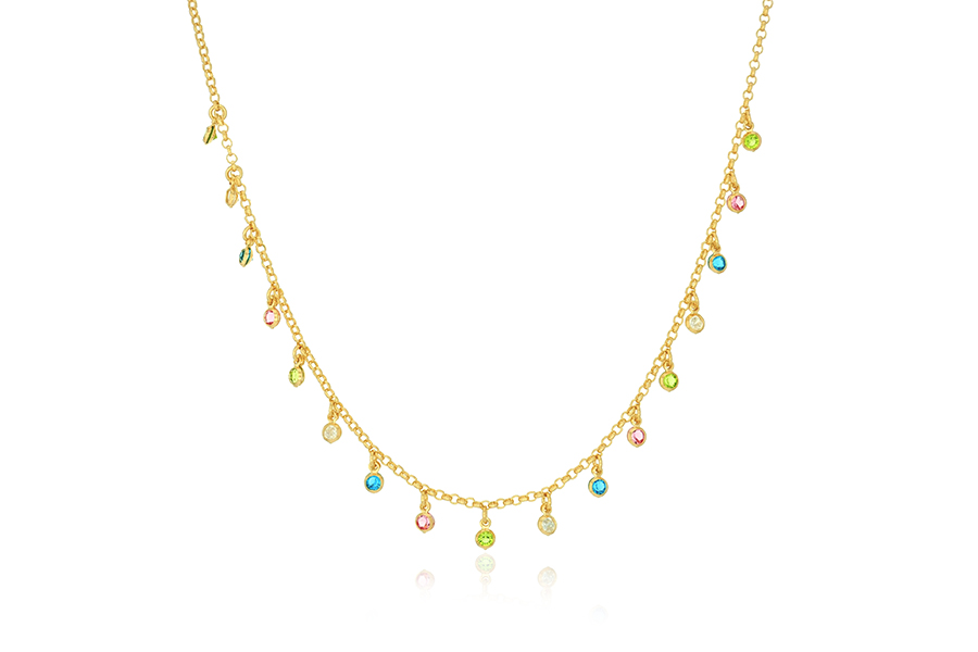 GARGANTILHA BANHADA EM OURO, ELO PORTUGUÊS 1,80mm ESPESSURA, 45cm COMPRIMENTO, PEROLAS E CRISTAIS