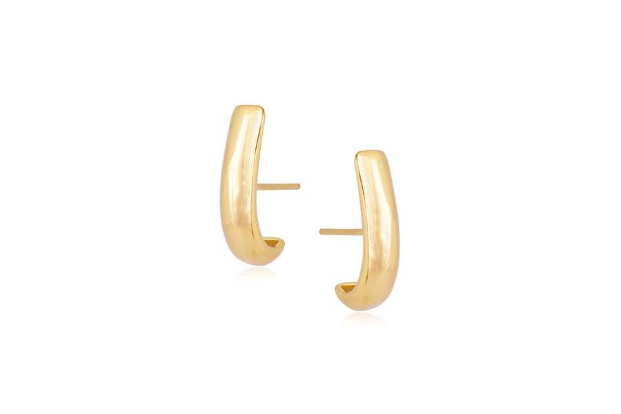 BRINCO BANHADO EM OURO, MEIA ARGOLA, 16mm ALTURA E 10,50mm LARGURA, LISO OU ACETINADO