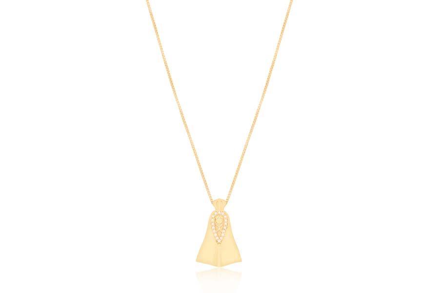 GARGANTILHA BANHADA EM OURO, GRAVATA, ELO PORTUGUÊS 2mm, E ZIRCÔNIA REDONDA, QUADRADA E CORAÇÃO