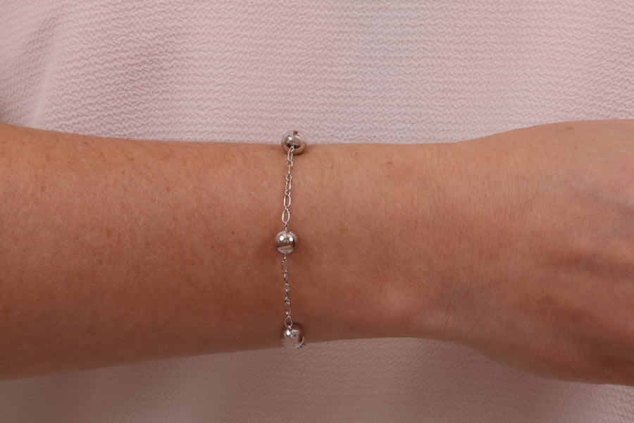 PULSEIRA BANHADA EM RÓDIO BRANCO, METADE COM ELO PORTUGUÊS 5mm E METADE COM ELO REDONDO 10mm E CORRENTE, 22cm COMPRIMENTO SEM EXTENSOR