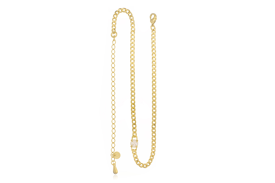 GARGANTILHA BANHADA EM OURO, VENEZIANA 0,80mm, 40cm COMPRIMENTO E ZIRCÔNIA QUADRADA 8mm, PARA QUALQUER COR DE PEDRA