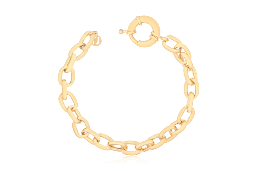 PULSEIRA BANHADA EM OURO, CORRENTE ELO 6,40mm LARGURA, 19cm, 20cm, 21cm, 22cm COMPRIMENTO E PESO 10,10g