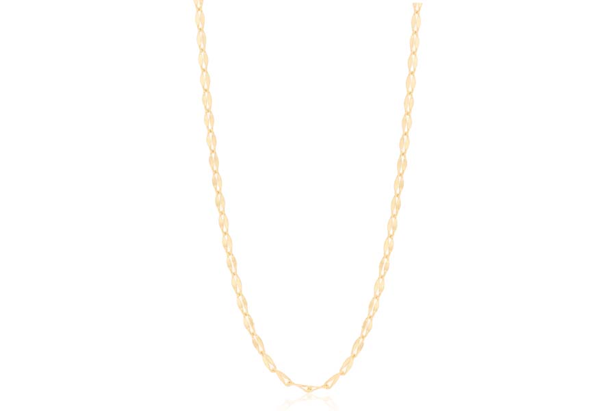 CORRENTE BANHADA EM OURO, ELO CORDA 3mm, 45cm COMPRIMENTO, EXTENSOR 5cm COMPRIMENTO E PESO 12,20g