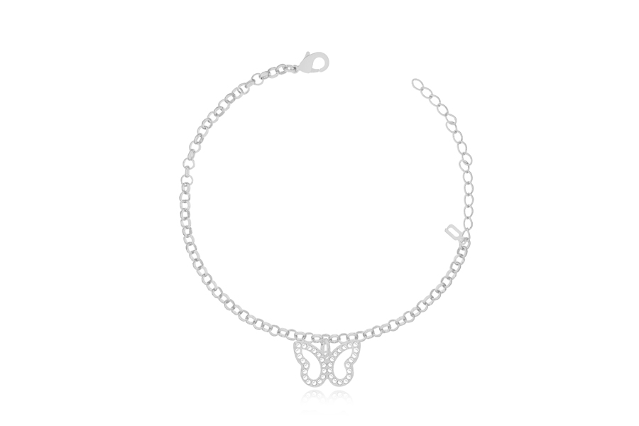 PULSEIRA BANHADA EM RÓDIO BRANCO, METADE COM ELO PORTUGUÊS 5mm E METADE COM ELO REDONDO 10mm E CORRENTE, 22cm COMPRIMENTO SEM EXTENSOR
