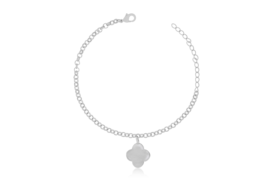 PULSEIRA BANHADA EM RÓDIO BRANCO, ELO 4mm LARGURA, FIGA, CORAÇÃO, CRUZ, OLHO GREGO E PONTO DE LUZ