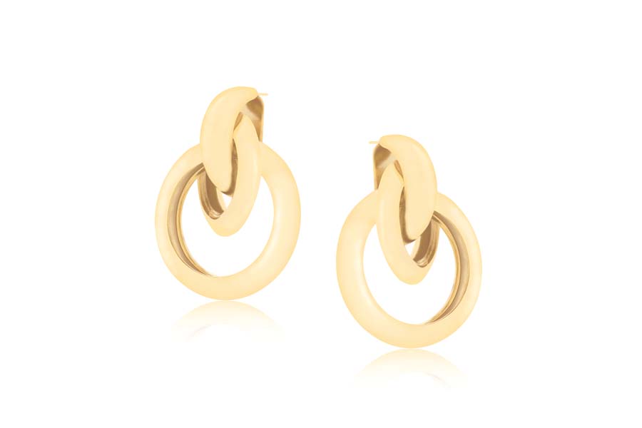 BRINCO BANHADO EM OURO, BASE NAVETE E DOIS ASPIRAL 30mm, LISO OU ACETINADO, PROVIN OPAC