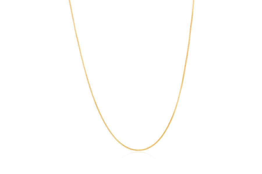 CORRENTE BANHADA EM OURO, ELO VENEZIANA 0,80mm, 45cm COMPRIMENTO, EXTENSOR 5cm COMPRIMENTO E PESO 2,20g