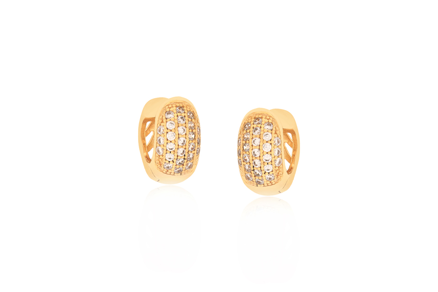 BRINCO BANHADO EM OURO, ARGOLA CRAVEJADA 23mm DIÂMETRO, 6,80mm LARGURA