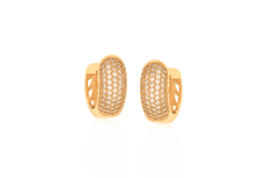 BRINCO BANHADO EM OURO, PONTO DE LUZ 5mm E CRAVAÇÃO INGLESA