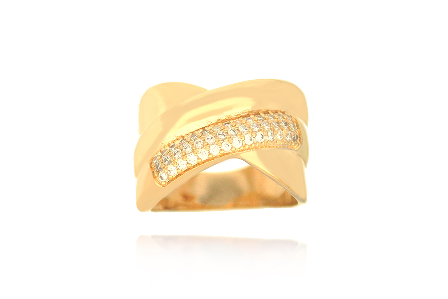 ANEL BANHADO EM OURO, APARADOR DUPLO COM 2 FILEIRAS DE ZIRCÔNIAS CADA