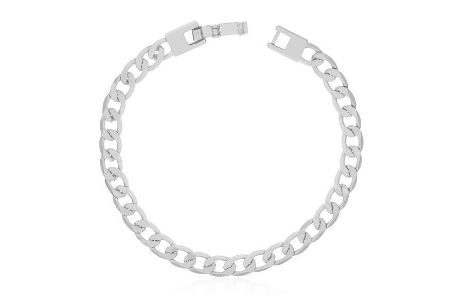 PULSEIRA BANHADA EM RÓDIO BRANCO, ELO PORTUGUÊS 5mm, 17cm COMPRIMENTO, EXTENSOR 5cm COMPRIMENTO E CHAVE 20mm COMPRIMENTO
