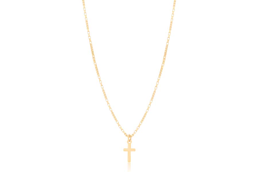 ESCAPULÁRIO INFANTIL BANHADO EM OURO, ELO 1,20mm, 45cm COMPRIMENTO E MEDALHA 9,5X7mm CORAÇÃO E CRUZ