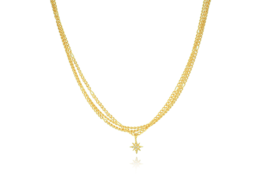GARGANTILHA BANHADA EM OURO, ELO PORTUGUÊS 2mm, 45cm COMPRIMENTO COM DOIS FIOS DE ZIRCÔNIA 1cm CADA