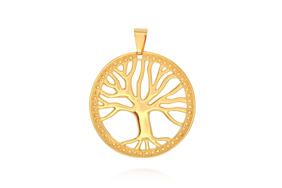 PINGENTE BANHADO EM OURO CRISTAL 30mm DIÂMETRO, ARVORE DA VIDA
