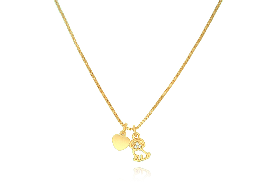 GARGANTILHA BANHADA EM PRATA LEVE, DUPLA, ELO 1,50mm ESPESSURA, PONTO DE LUZ 5mm E CORAÇÃO VAZADO 15,50mm LARGURA COM PATA