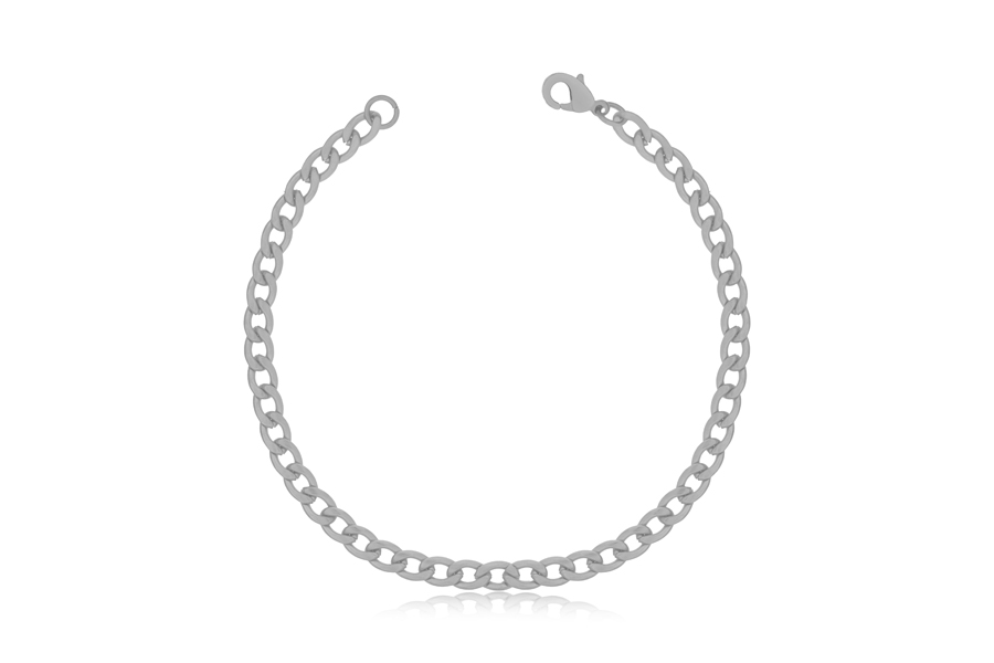 PULSEIRA BANHADA EM RÓDIO BRANCO, CORRENTE ELO 3,30mm ESPESSURA, 18cm COMPRIMENTO, EXTENSOR 5cm COMPRIMENTO E PESO 4,50g