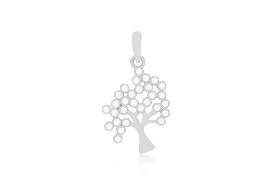 PINGENTE BANHADO EM RÓDIO BRANCO, ÁRVORE DA VIDA 22mm DIÂMETRO