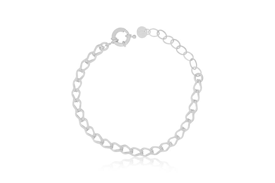 PULSEIRA BANHADA EM PRATA LEVE, ELO OVAL 1,20mm LARGURA, 16cm COMPRIMENTO, EXTENSOR 5cm COMPRIMENTO E MENINO 9mm DIÂMETRO