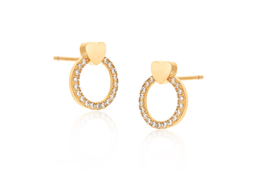 BRINCO BANHADO EM OURO, CORAÇÃO E PONTO DE LUZ 6mm ALTURA