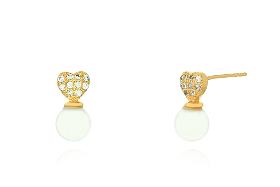 BRINCO BANHADO EM OURO, ZIRCÔNIA 3mm E PÉROLA 4,50mm LARGURA