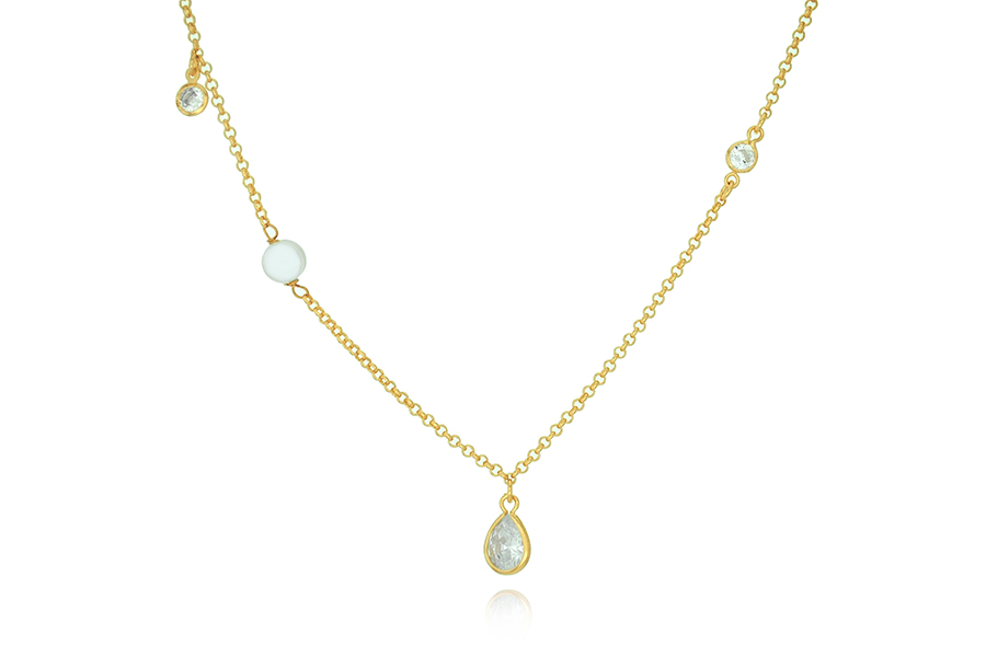 GARGANTILHA BANHADA EM OURO, ELO VENEZIANA 0,80mm, 42cm COMPRIMENTO E ZIRCONIA GOTA 10X7mm, PARA QUALQUER COR DE PEDRA