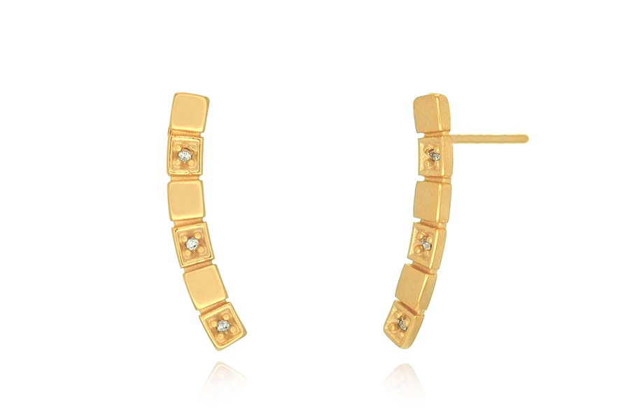 BRINCO BANHADO EM OURO, TRANÇADO CURVADO COM DETALHE CRAVEJADO