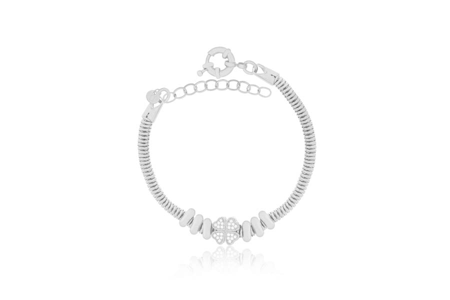PULSEIRA BANHADA EM RÓDIO BRANCO, ELO 4mm LARGURA, FIGA, CORAÇÃO, CRUZ, OLHO GREGO E PONTO DE LUZ