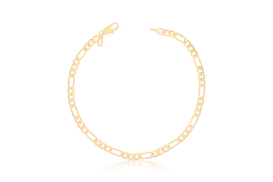 PULSEIRA INFANTIL BANHADA EM OURO, VENEZIANA LONGA 1,50mm ESPESSURA E CHAPINHA COM MENINO 24mm COMPRIMENTO
