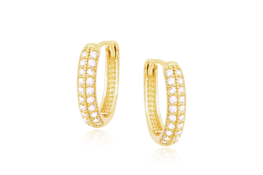 BRINCO BANHADO EM OURO, ARGOLINHA COM 74 ZIRCÔNIAS, 16mm DIÂMETRO E 9mm LARGURA
