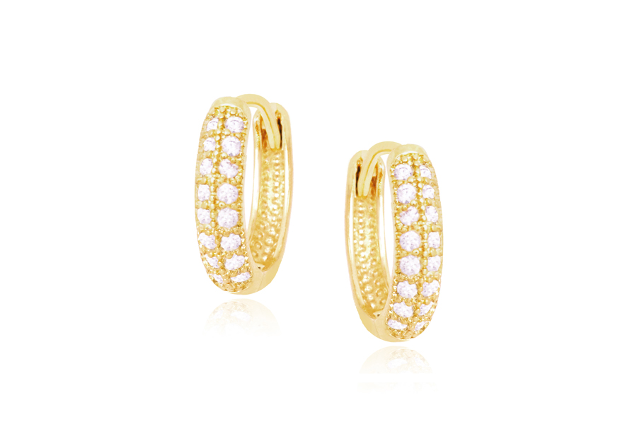 BRINCO BANHADO EM OURO, ARGOLINHA COM 25 ZIRCÔNIAS E 12mm DIÂMETRO COM ZIRCÔNIAS BRANCAS OU COLORIDAS