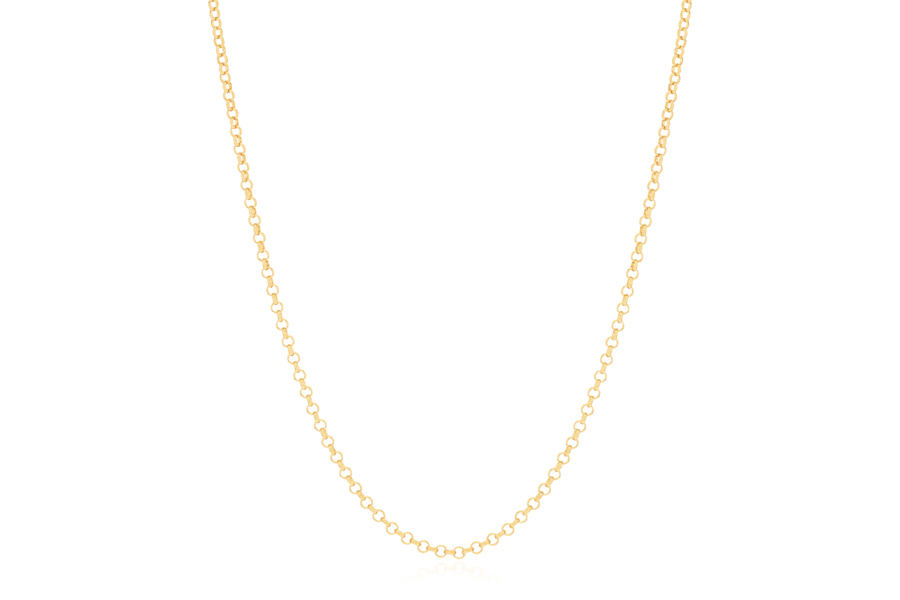 CORRENTE BANHADA EM OURO, ELO PORTUGUÊS 5mm, 45cm COMPRIMENTO, EXTENSOR 5cm COMPRIMENTO E PESO 12,7g
