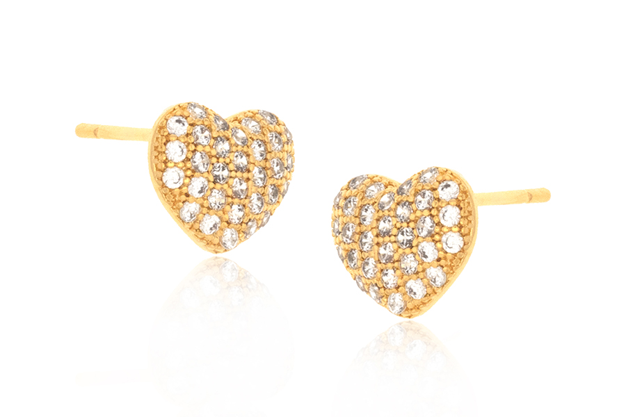 BRINCO BANHADO EM OURO, CORAÇÃO ZIRCÔNIA 8X8mm, PARA QUALQUER COR DE PEDRA