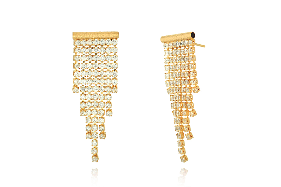 BRINCO BANHADO EM OURO, 23mm COMPRIMENTO COM ZIRCÔNIAS BRANCAS OU COLORIDAS