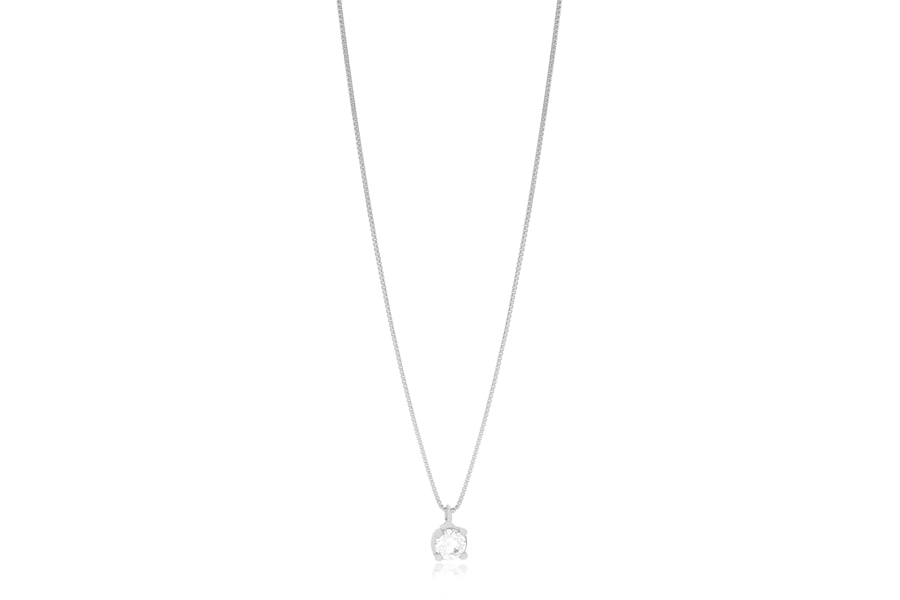 GARGANTILHA BANHADA EM RÓDIO BRANCO, ELO 2mm LARGURA, PONTO DE LUZ 4,50mm E SÃO BENTO 12,50mm DIÂMETRO