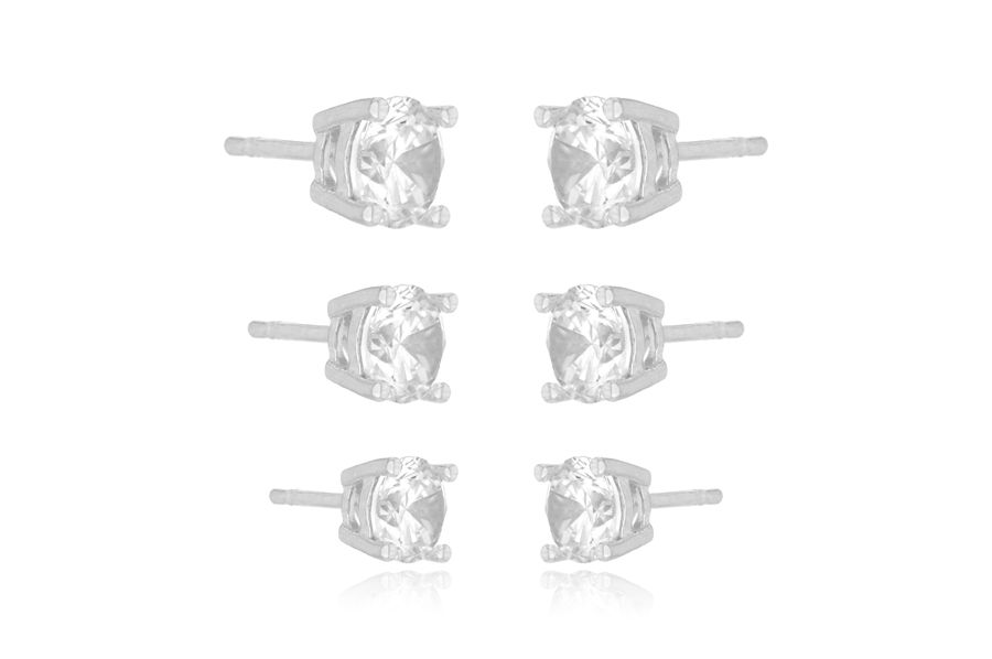 BRINCO EM PRATA, PONTO DE LUZ 5mm, CRAVAÇÃO INGLESA, COM BANHO DE RÓDIO BRANCO, COLEÇÃO AURA