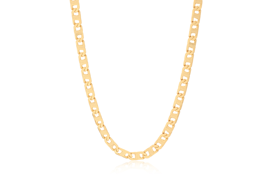 CORRENTE BANHADA EM OURO, ELO PORTUGUÊS 7mm DIÂMETRO, 1,90mm ESPESSURA, 45cm COMPRIMENTO E PESO 28,70g