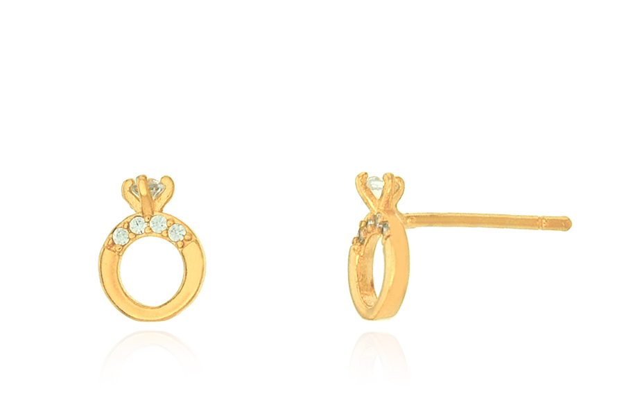 BRINCO BANHADO EM OURO, PONTO DE LUZ 2mm COM TARRAXA BABY