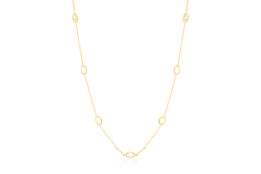 GARGANTILHA BANHADA EM OURO, CRISTAL REDONDO 14mm DIÂMETRO, ELO PORTUGUÊS 7mm DIÂMETRO, 1,90mm ESPESSURA E 37cm COMPRIMENTO