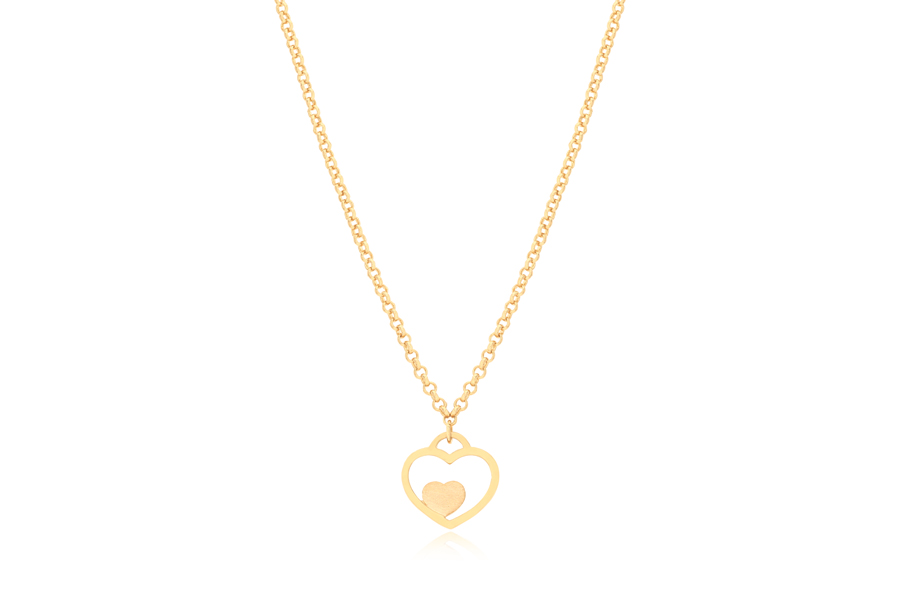 GARGANTILHA EM PRATA, CORAÇÃO 10,30mm ALTURA LISO E CRAVEJADO, ELO VENEZIANA, 42+5cm COMPRIMENTO