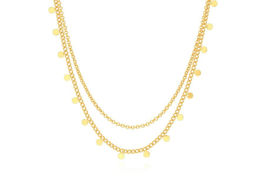 GARGANTILHA BANHADA EM OURO, ELO 2,20mm, 80cm COMPRIMENTO, PONTO DE LUZ E CORAÇÃO 12,50mm LARGURA