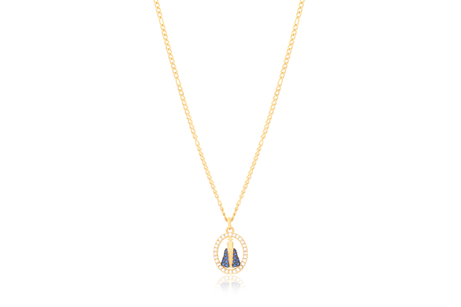 GARGANTILHA BANHADA EM OURO, VENEZIANA 1,50mm ESPESSURA, 45cm COMPRIMENTO E NOSSA SENHORA APARECIDA 30X21mm