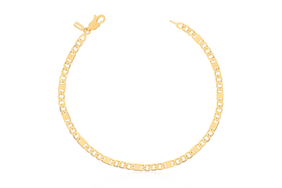 PULSEIRA BANHADA EM OURO, CORRENTE ELO PORTUGUÊS 2,50mm, 17cm COMPRIMENTO, EXTENSOR 5cm COMPRIMENTO E PESO 2,20g