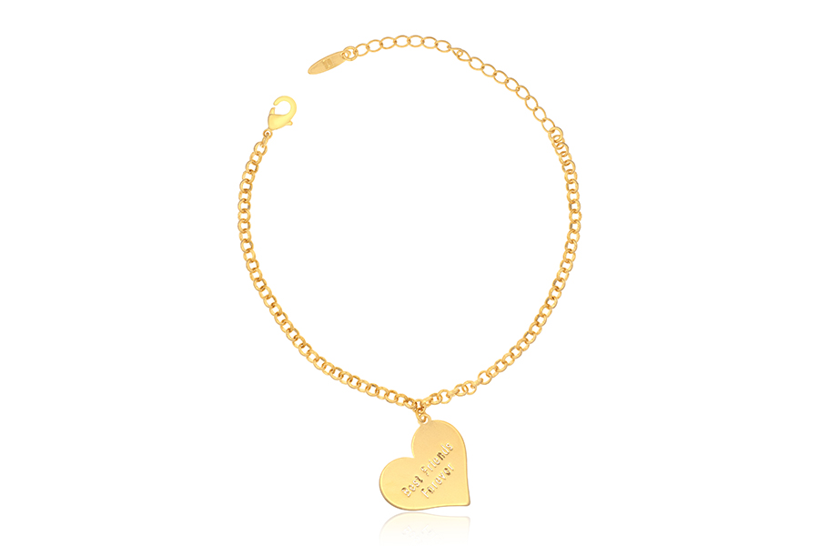 PULSEIRA BANHADA EM OURO, ELO PORTUGUÊS 7mm DIÂMETRO, 2,50mm ESPESSURA E CORAÇÃO 27mm LARGURA, LISO OU ACETINADO