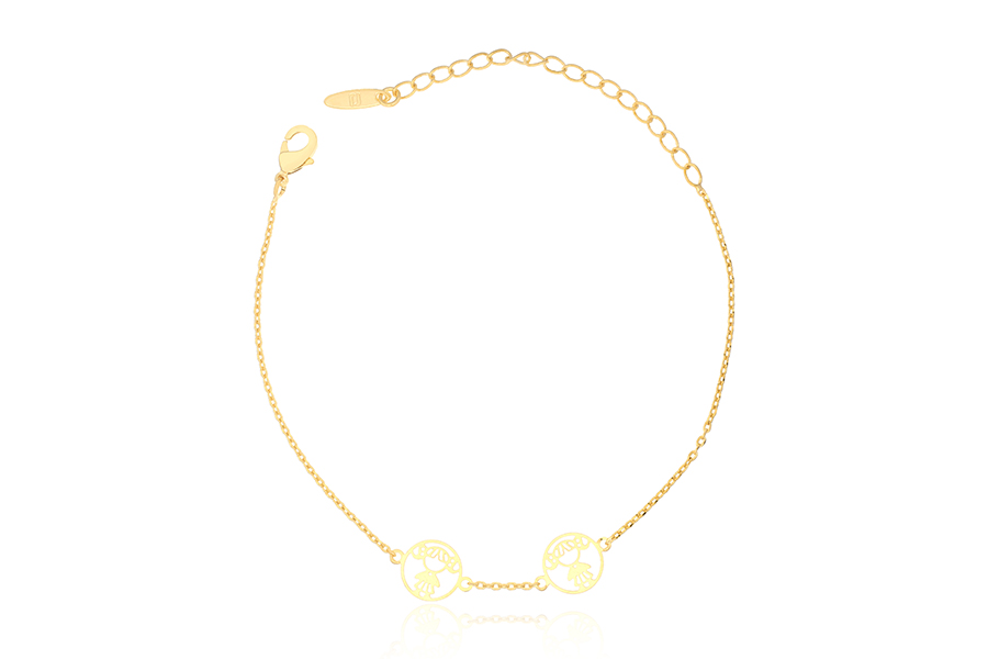 PULSEIRA BANHADA EM OURO, ELO PORTUGUÊS 3mm, ELO CORAÇÃO 4,20mm LARGURA, PINGENTE CORAÇÃO 11mm LARGURA COM MENINA