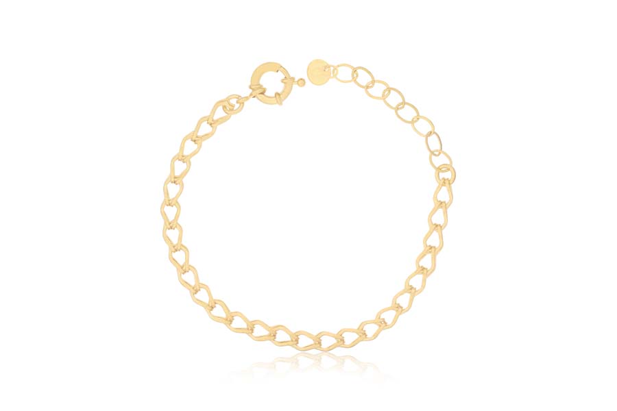 PULSEIRA BANHADA EM OURO, ELO 2,30mm LARGURA, 16cm COMPRIMENTO, EXTENSOR 5cm COMPRIMENTO E CORAÇÃO 7mm LARGURA, PARA QUALQUER COR