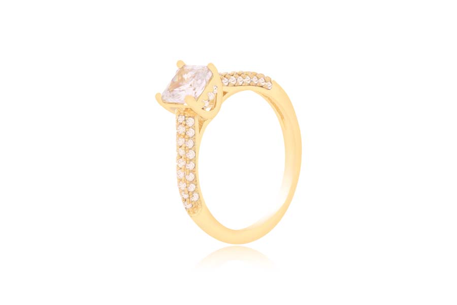 ANEL BANHADO EM OURO, APARADOR DUPLO, COM 2 FILEIRAS DE ZIRCÔNIAS CADA