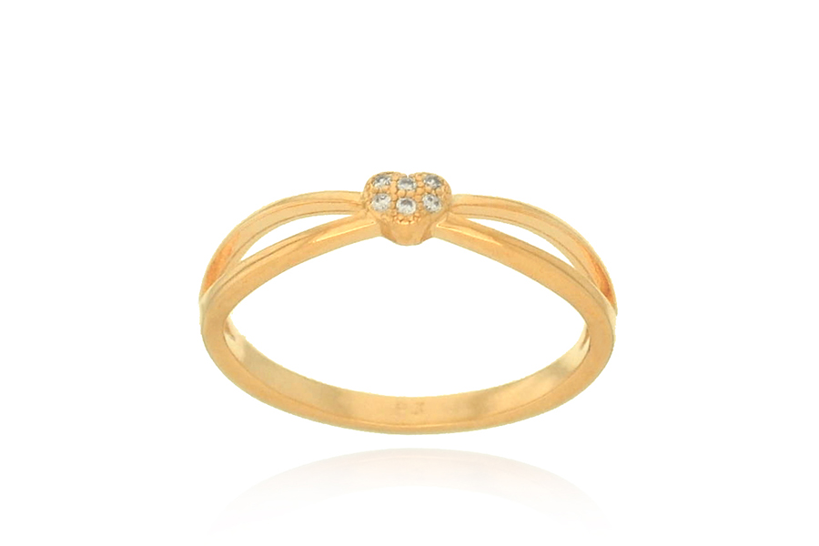 ANEL BANHADO EM OURO CORAÇÃO 7mm ALTURA E ZIRCÔNIAS BRANCAS OU COLORIDAS